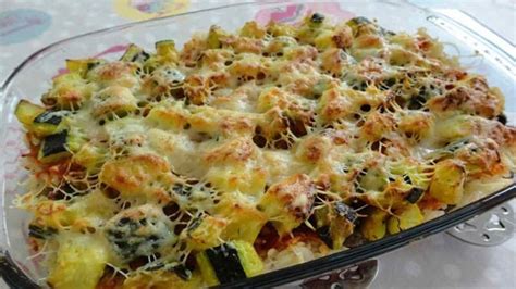 - Dans un plat à gratin, alternez les couches de courgettes et de sauce à la viande.